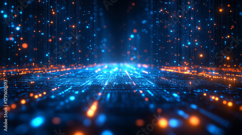 A digital abstract background with glowing blue and white geometric lines creating a futuristic and modern atmosphere, symbolizing technology, innovation, and digital advancement