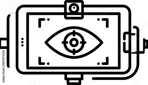 A digital device displays an eye with targeting elements, highlighting biometric technology.