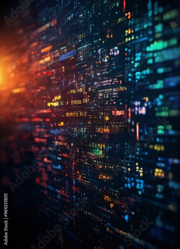 a digital illustration of a cityscape at night, with a multitude of lights and reflections creating a vibrant, abstract pattern.