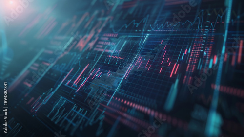 A digital interface teeming with complex data visualizations and graphs, representing cutting-edge technology and information flow.