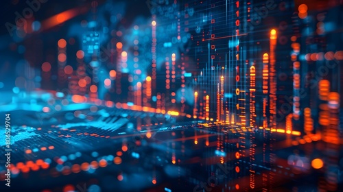A digital stock market graph with data points and charts, representing the concept of financial innovation in trading on virtual exchange platforms.