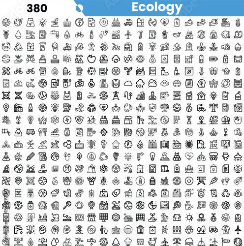 A diverse collection of monochrome icons representing various ecological themes and concepts, suitable for environmental projects.