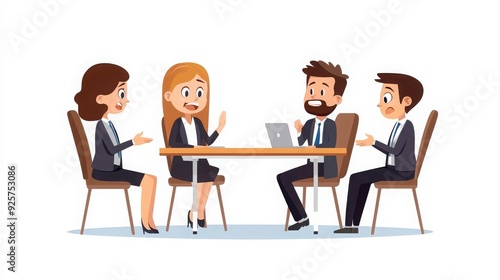 A diverse group of professionals engaged in a lively meeting, discussing ideas and collaborating around a conference table.