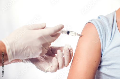 A doctor doing injection to the patient. Isolated. Medicine and healthcare concept