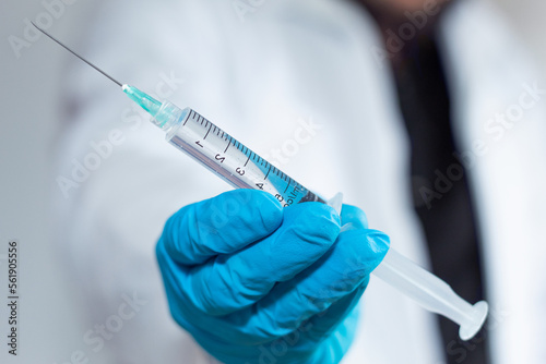 A doctor showing a syringe
