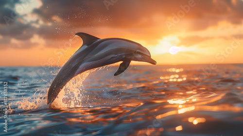 A dolphin gracefully leaping out of the ocean