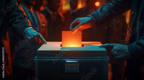 A dramatic image of a ballot box being secured under the watchful eyes of election officials symbolizing the sanctity of the voting process