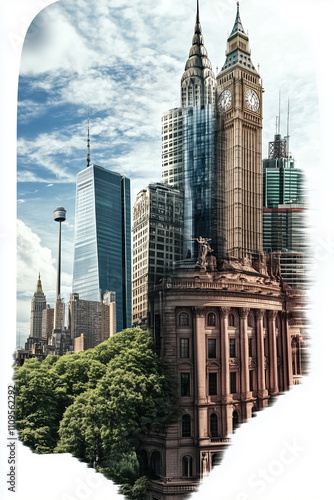 A dreamlike or painting collage of famous travel destinations from around the world.