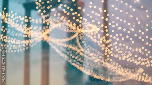 A dreamy blur of warm yellow fairy lights creating a whimsical atmosphere in a festive setting.