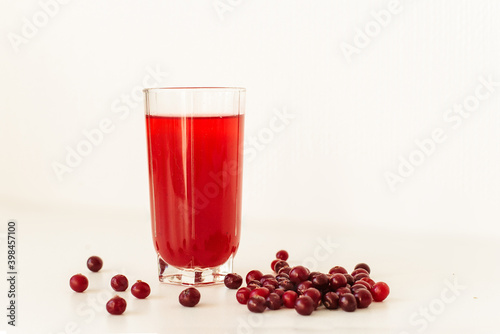 A drink of cranberries - berry morsos - on a white background in a glass glass. Cranberries.