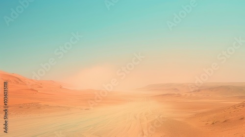 A dusty gradient blending from a pale powdery blue to a sandy peach evocative of a hot desert day on a spontaneous road trip.