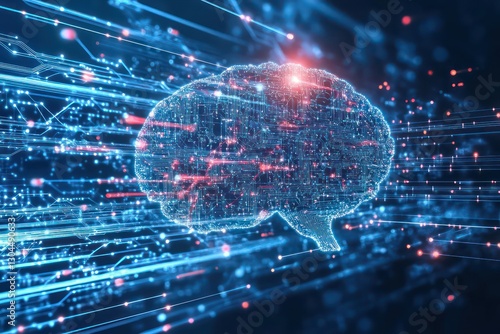 A dynamic background of a circuit board, with electric currents and data connections, symbolizing the cutting-edge technology behind artificial intelligence.