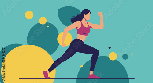 A dynamic illustration depicts a woman in activewear running with energy, perfect for fitness, health, and wellness-related marketing materials, web design, and promotional content.