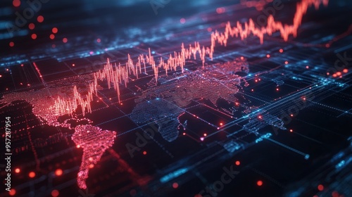 A dynamic visualization of global stock exchanges interconnected by digital lines