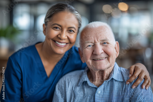 A female doctor with South Asian features offers a comforting hand to an elderly male patient in a brightly lit, real-life clinic setting, focusing on their connection.