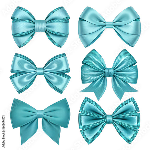 A festive set of colorful bow ties and ribbons for holiday, Christmas, or birthday gift decoration and celebration designs