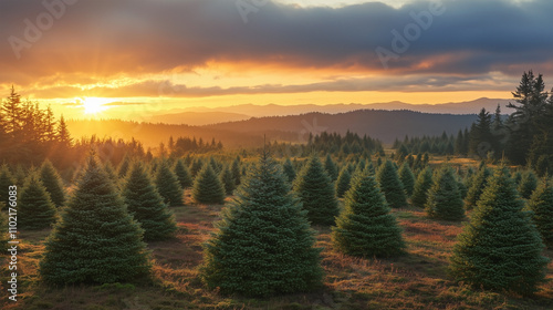 A field of trees with a sun in the sky