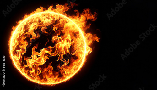 A fiery sphere resembling a sun, with flames against a dark background, embodying energy and power. Generative AI