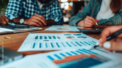 A financial consultant explaining economic data to clients in an office
