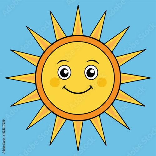 A flat-style illustration of the sun, featuring bright yellow rays radiating from a central circle