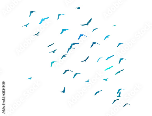 A flock of blue watercolor flying birds. Free birds abstraction Vector illustration
