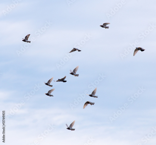a flock of pigeons in the sky
