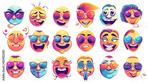 a funny smile collection, various emotions on one page, also suitable as a sticker, AI generated image