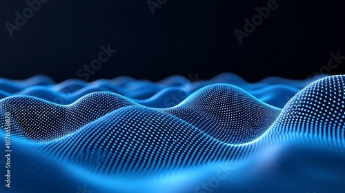 A futuristic abstract blue tech background with particles, artificial neural networks, and cyber quantum computing