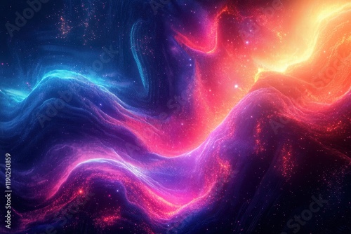 A futuristic abstract pixel art piece with vibrant swirling gradient patterns in neon tones of red, green, and blue