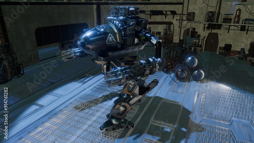 A futuristic combat robot in the future.