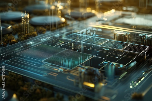 A futuristic energy grid powered entirely by renewable sources, displayed through dynamic data visualizations on a holographic interface.
