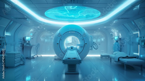 a futuristic hospital scene with a state-of-the-art MRI machine at the center,