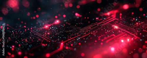 A futuristic red circuit board pattern with black background and red light effect circuit lines, showcasing an electronic technology theme and sleek techinspired design