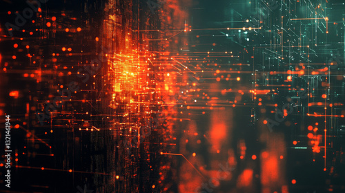 A futuristic representation of smart city technology, showcasing pixelated networks and connected lines symbolizing intelligent urban innovation