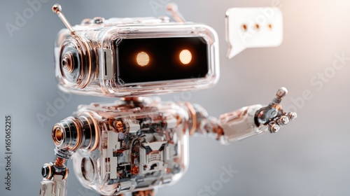 A futuristic robot with a speech bubble suggesting communication