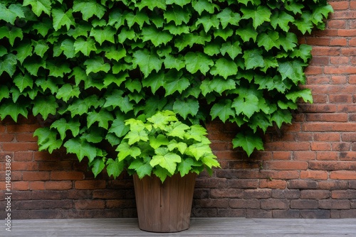 A garden terrace with vertical green walls, wooden decking, and seating for relaxation