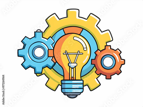 A gear and lightbulb combination logo, symbolizing innovation and problem-solving in tech