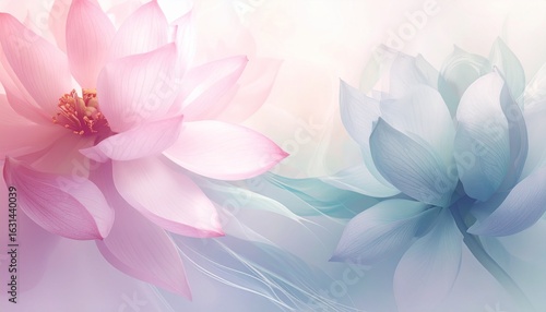 A gentle vertical abstract filled with pastel gradients and petal-like shapes