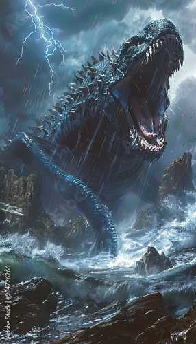 A Gigantic Sea Monster Emerges from the Stormy Ocean