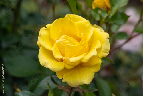 A Gilded Sun Rose flower growing in the garden. United States.