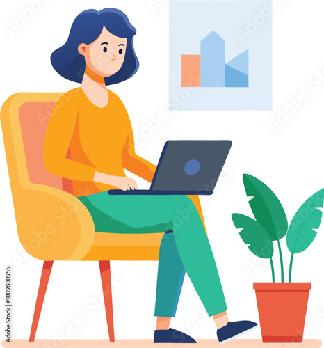 a girl is using his laptop vector