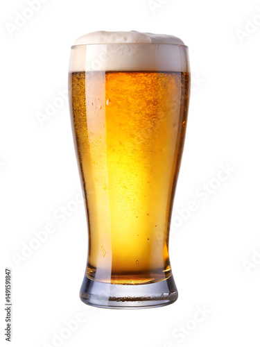 A glass of beer with splashes isolated on white background