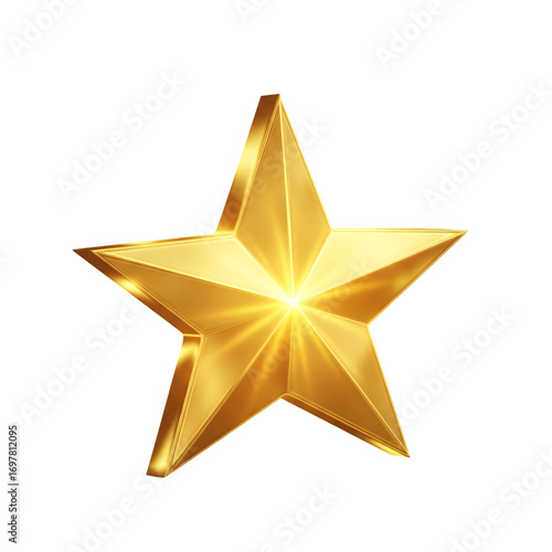 A gleaming golden five pointed star with realistic shading isolated on transparent background