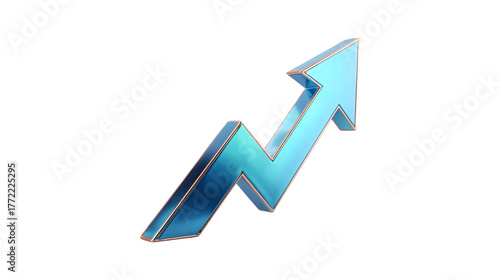 A glossy blue arrow with rose gold trim points upwards symbolizing financial growth business success and positive progress,