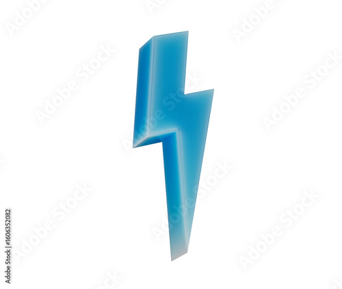 A glowing blue 3D lightning bolt icon with a sleek, modern and electrifying look. 3d illustration