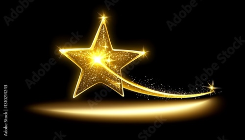 A Glowing Golden Star with a Sparkling Trail is Displayed