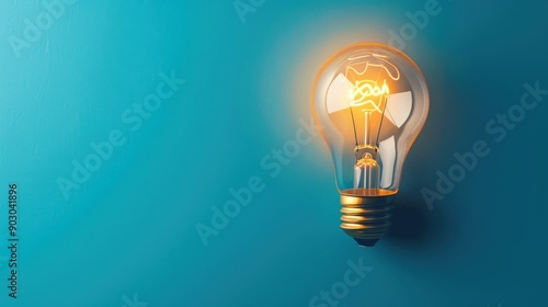 A glowing light bulb on a blue background, symbolizing creativity and innovative ideas.