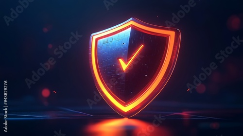 A glowing shield with a check mark symbol, representing security and protection in a digital environment.