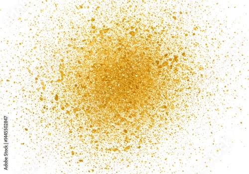 A golden splatter effect with a concentrated center and a fading spray on a white background art design
