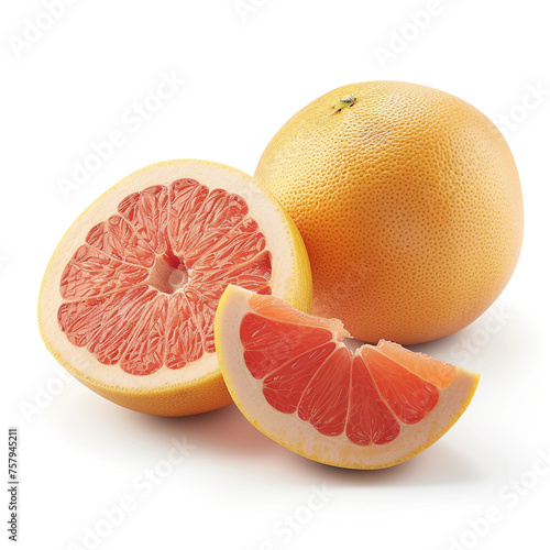 A grapefruit cut in half, exposing its richly colored segments and juicy pulp against a white background сreated with Generative Ai